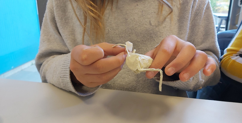 Die Kreativ-Gruppe der 3b-und 3c-Klassen stellt Spinnenmodelle her.