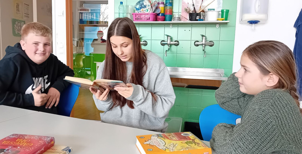 Einblicke in diese „fremden Köpfe“ konnten viele Schüler:innen beim Vorlesen in der 5. und 6. Stunde gewinnen. Die beiden Stunden wurden von allen Klassen unterschiedlich zum Motto „Vorlesen“ gestaltet. Einige 1. Klassen kamen mit ihren 4. Patenklassen zusammen und lasen sich gegenseitig vor, wodurch ein interessanter Austausch über die unterschiedlichen Lektüren entstehen konnte. Andere Klassen nahmen ihre derzeitige Klassenlektüre zur Hand und lasen sich gegenseitig die unterschiedlichen Kapitel vor. Anschließende Diskussionen zu den einzelnen Textabschnitten gaben dabei die Möglichkeit, unterschiedliche Blickwinkel auf die Gedanken der Protagonist:innen, die verschiedenen Handlungsstränge sowie Interpretationen in den Raum zu werfen.